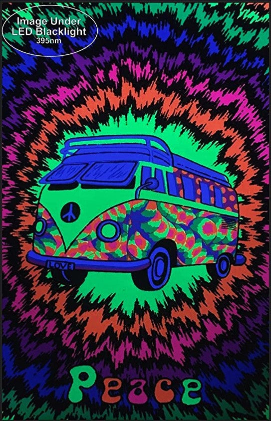 Peace Bus Tie Dye - Black Light Poster
